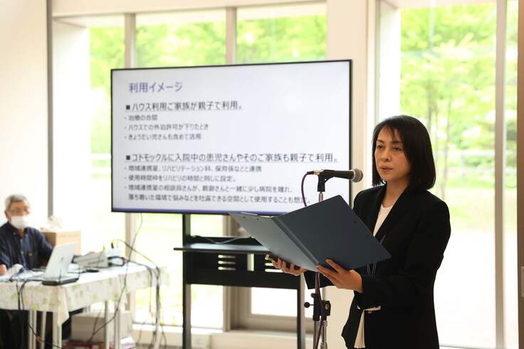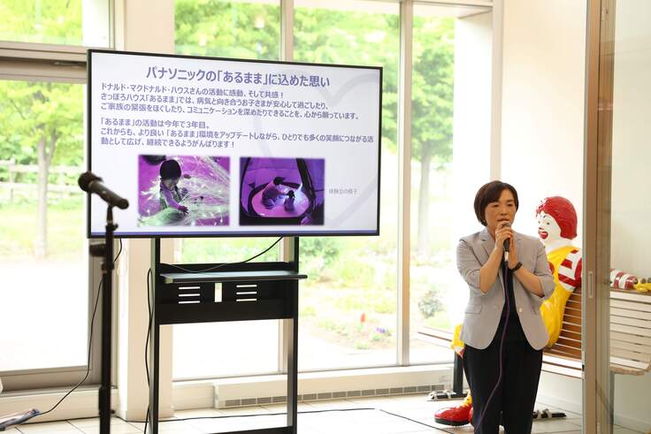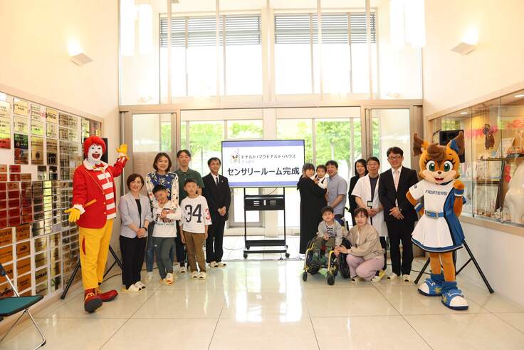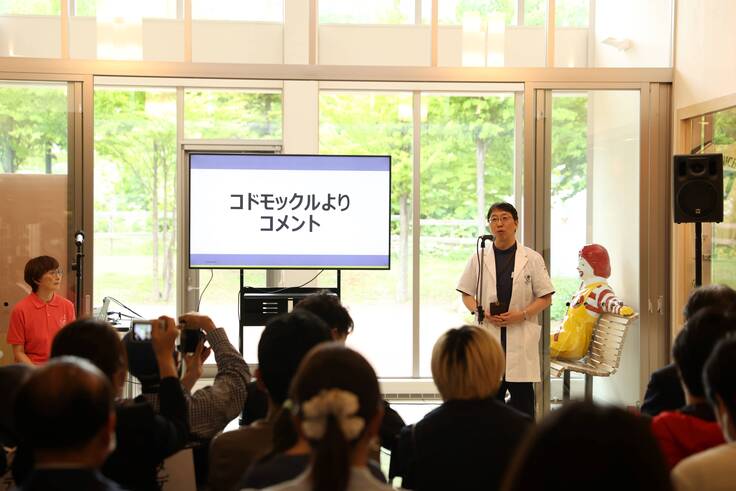 当日はドナルドやポリーちゃんが、ハウス利用ご家族・コドモックルの患者さん・またコドモックルのセンター長などをお出迎えし、関係者を交えて和やかなお披露目会となりました。