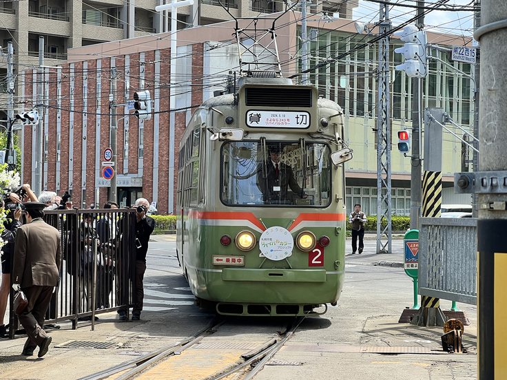 たくさんの方にお見送りいただきながら4周の貸切ラストランを終えて、243号車は札幌市電を卒業しました。昨年からのリバイバルカラープロジェクトの完了であると同時に、昭和35年(1960)以来64年の長きにわたって札幌の街を駆け抜けた車両の最後の花道でした。
