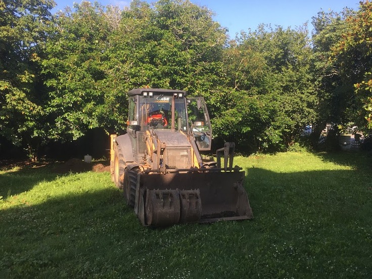 この写真は昨日の朝、我が家の庭に突如現れた大きなシャベルカーです。