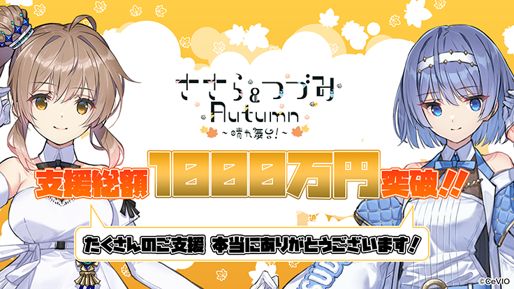 ハイクオリティのキャラクターライブをお届けするべく、正直なところ大赤字覚悟でスタートした #ささつづAutumn 企画ではございますが、現在までのご支援で今回の #ささつづAutumn の開催費用の7割以上を賄えるところまでたどり着きました。