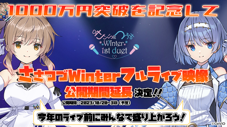そして、たくさんのご支援に報いるべく、4thゴールで決定しました #ささつづWinter の無料公開について、当初の「10月20日~23日」の公開期間を延長する事が決定いたしました。