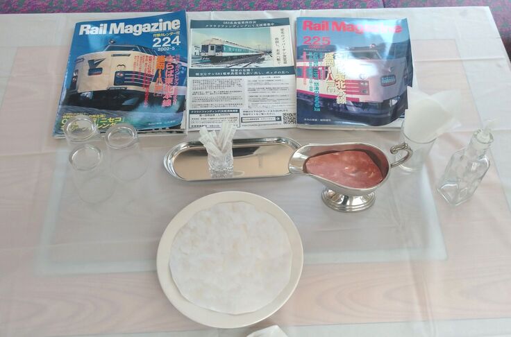 ポッポの丘で保存されている千葉都市モノレール1000形車両の車内に食堂車のテーブルを再現し、食堂車の雰囲気を作るとともに、ご来場いただいた方へ当保存会の活動についてを説明させていただきました!