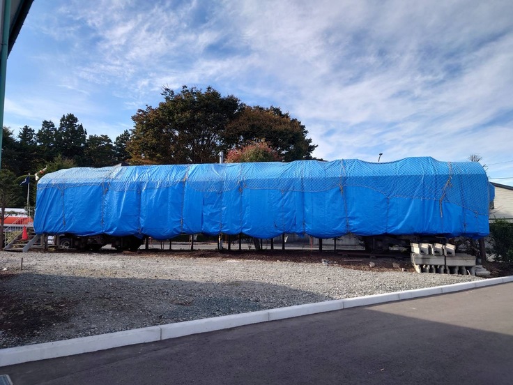 車両は本日再び保護のためブルーシートを装着致しました。冒頭にも触れました通り、車両の移送日程につきましては現在もなお調整を進めております。