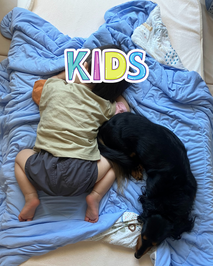 いつもケージのそばまで寄って「ブーブ!」と声をかけています。ただ、イブラの腰を守るため、今は動線を完全に分けています。それでも、お昼寝中の子どものそばにイブラを少し出してあげると、