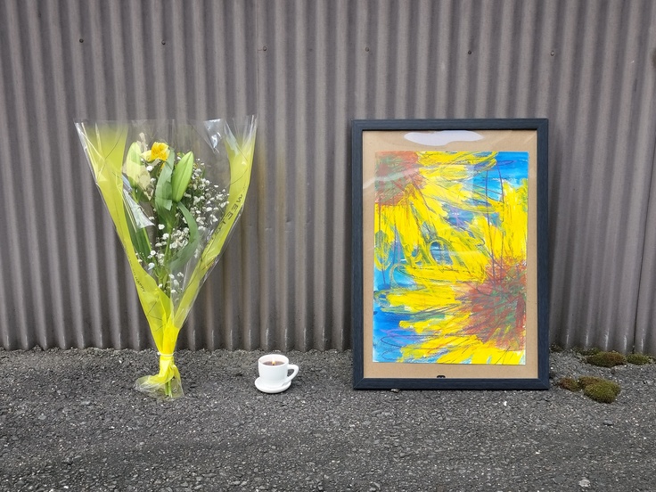 同席いただいた方が、平野さんの描いたひまわりの絵を持ってきたくれたのでそれも一緒に飾りました。