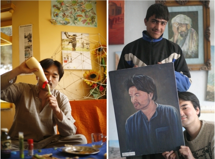 左:カブールの事務所にて 右:子どもが描いてくれました