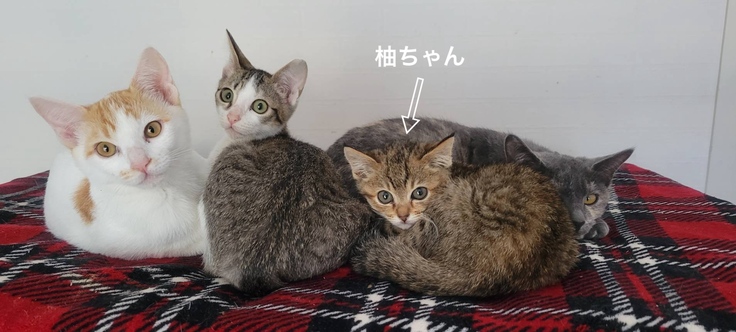 残された柚は、先住ネコたちに囲まれて、すくすくと育っています。