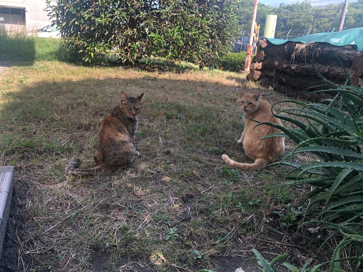 工場の敷地内には、まだ目視レベルで30〜40匹のネコたちがいます。