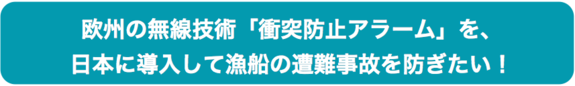 欧州の先進船舶無線技術(AIS:衝突防止アラーム)を日本に導入し、日本の漁業に合わせた応用開発をするための資金を集め、国内での低価格での販売を目指すプロジェクト。