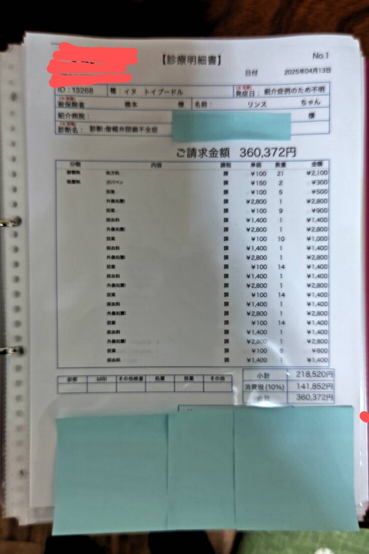 今度、6月中頃には、ペットクリニックの中にある、トリミングに行く予定です。術後半年は抗血栓薬を服用をするため、切り傷などの出血が無いように、注意をしながら行って頂きます。