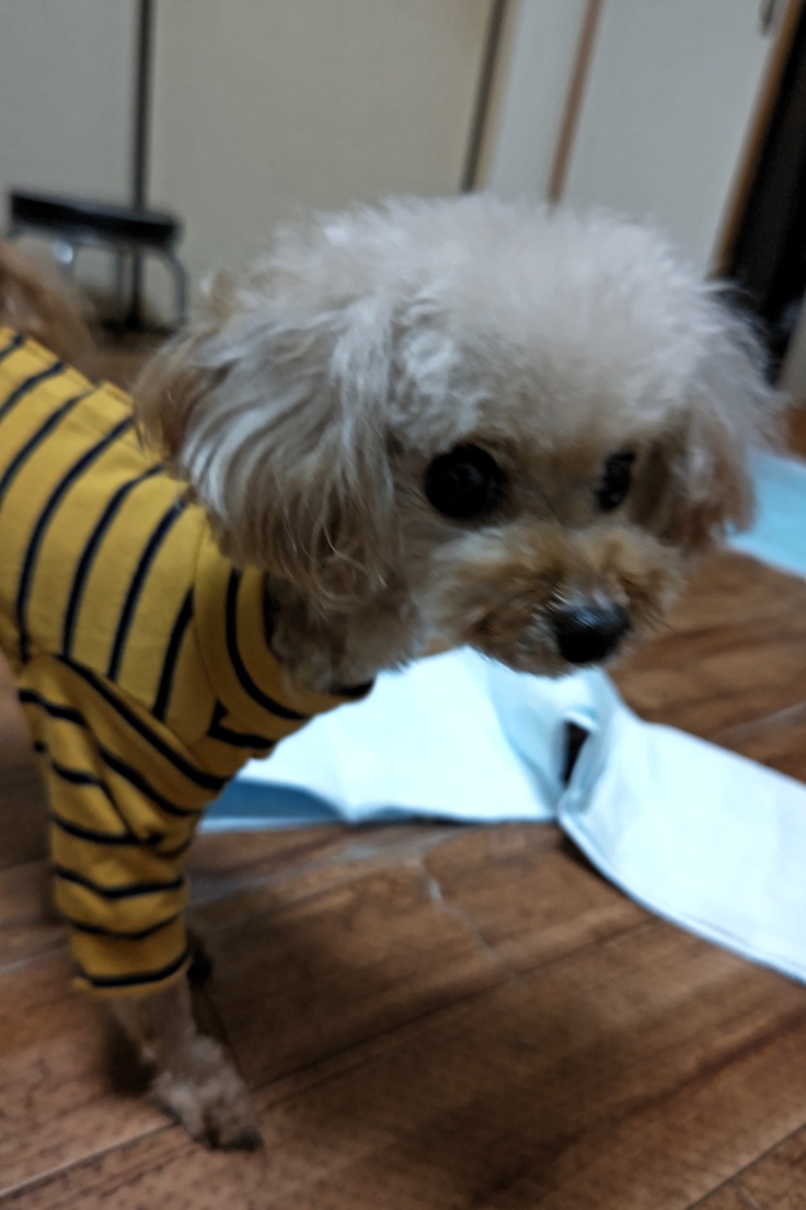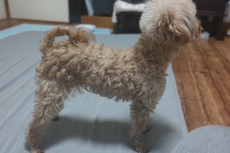 手術の剃毛のあと、だいぶ毛が伸びてきました🐶