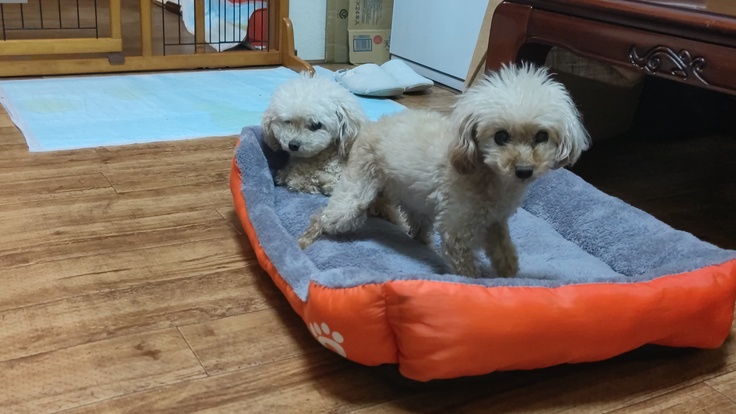 リンスとシャンプーを、時々は一緒に触れ合わせています。長く仲良し姉妹、クッションに並んでお座りするツーショットを見ながら、手術をして、リンスが、元気になって、本当に良かったと実感をしています。