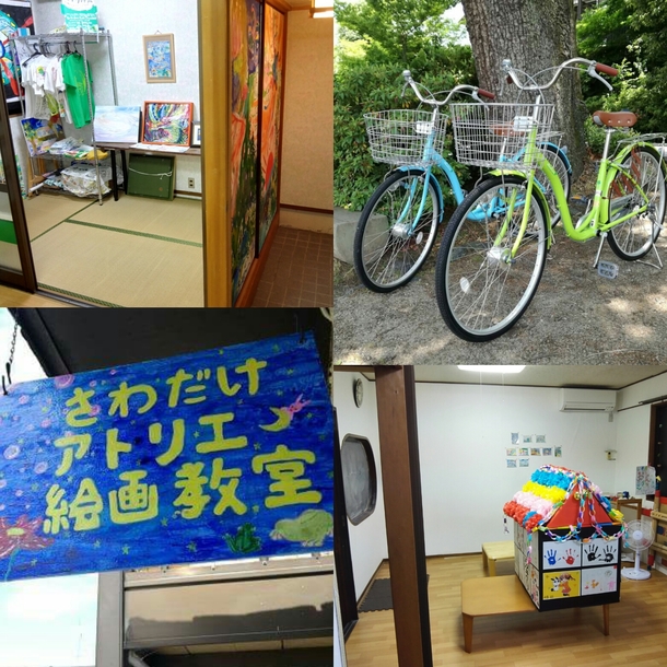 絵画教室は4月末から自分のこども、4才と6才二人を生徒とし開始しました。今までに短期的一ヶ月限定で通ってくれた生徒さんが7名。体験やワークショップに来てくださった方計20名ほど。地域の方々に少しずつさわだけアトリエ絵画教室があることが知られつつあるのが今です。町内の子供会のおみこし作りを場所を提供させていただき作ったりと根付いてきております。