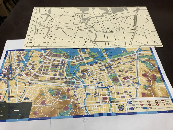地図面の墨字(カラー)版下と点字版下の立体コピー