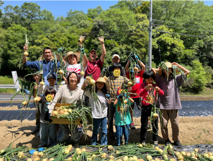 こちらは地域の農家さんのところで玉ねぎ堀をしたときの様子。