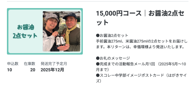 手間ひま込めて農薬・化学肥料不使用で原材料からつくられている、お醤油セット、ぜひリターンでお求めください。