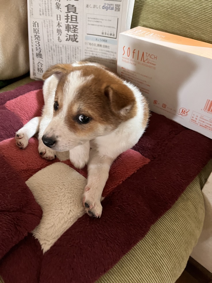 動物病院で診てもらったところ、生後1ヶ月半ぐらいのワンちゃんとのこと。