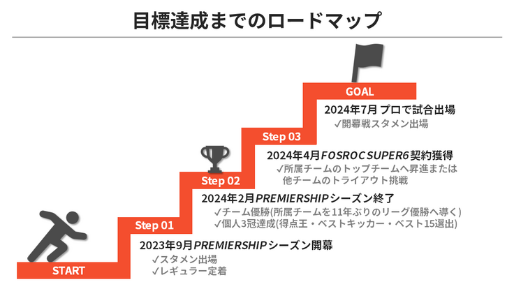 プロリーグで活躍し、日本におけるスコットランドラグビーリーグの認知を広げ、将来的には日本人ラグビー選手の新たな活躍の場やジュニア世代の交流の場も作れたらと思います。