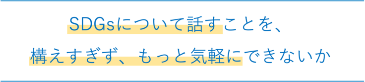 一方で、SDGsについて考える、つまり「世界を持続させていくためのあり方」を考えるということを、もっと構えずに、気軽に取り組めるものにしていけないかとも感じてきました。