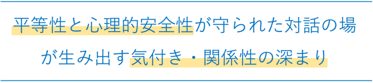 「心理的安全性」に加えてもう一つ重要なのがこの1人1分という「平等性」です。