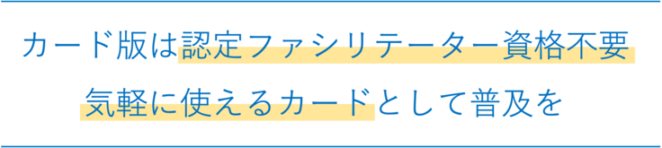 一方、同時に開発しているオンライン版に関しては、活用方法についてのレクチャーを含めた認定研修を受講いただく必要があるため、認定ファシリテーター資格を取得された方にのみID/パスワードを発行させていただきます。