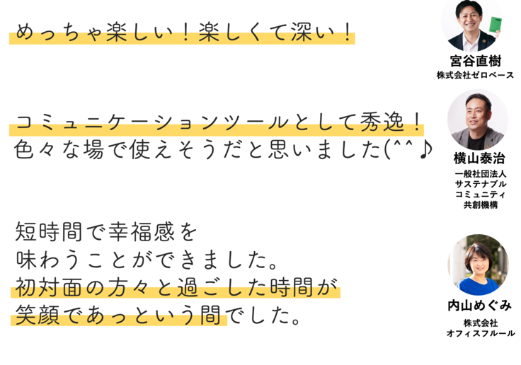 - 慣れ親しんだ人同士で実施することで新たな一面を発見してより関係性を深める