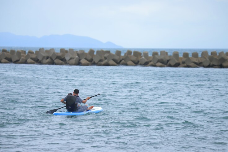海のレジャーに関しても地域の方とのご縁もつながってきています。今回、SUPやシーカヤックなどのアクティビティは長年鳥取で多くの方にガイドしている、渡邊賢司さんにお願いしています。渡辺さんはオーストラリアで取得したサーフィンインストラクターのライセンスを生かして、日本海でのサーフィンの普及に尽力されています。