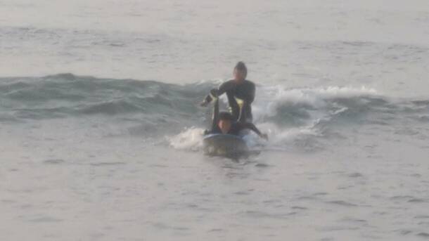 近場の海でサーフィンを体験し、プロジェクへ向けての準備に家族で楽しい時間を家族で過ごしています