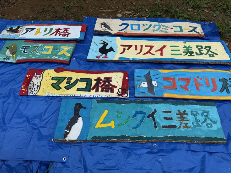 旭山動物園の坂東統括園長と天売島の森を探検したり、絵本作家のあべ弘士さんとはその森に設置する可愛い鳥の案内看板を作ったりしました。