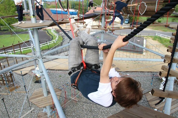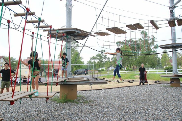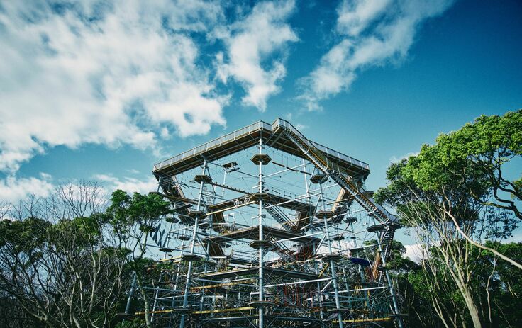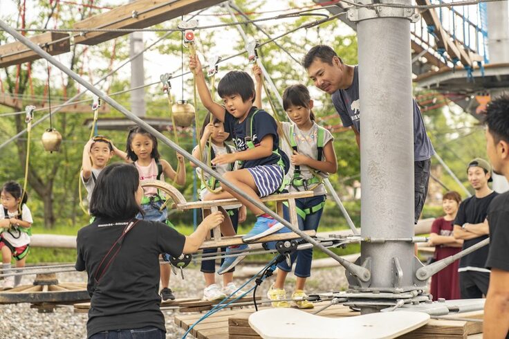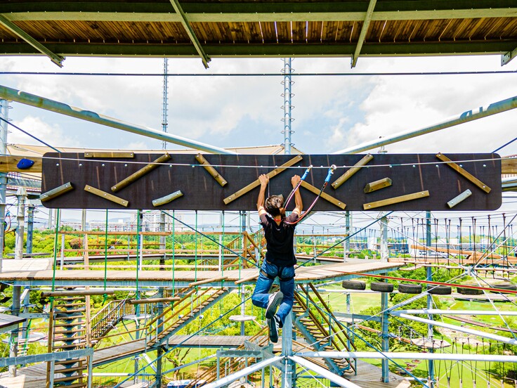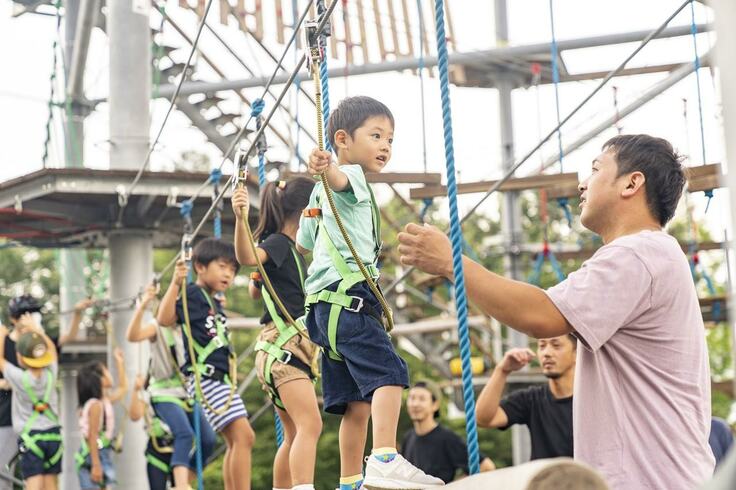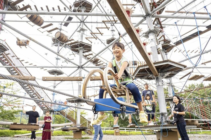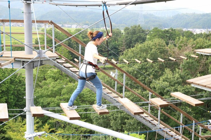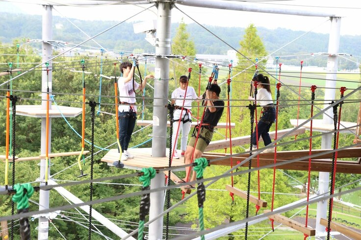 アスレチックを高所で行うことによって、様々な運動を通して、非日常感やスリルを味わうことができます。