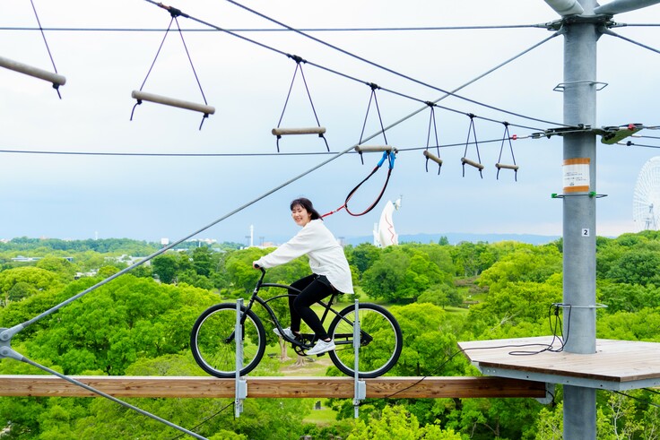 安全器具を付け、高所でスリル満点のアスレチックをプレイすることができ、一人でも仲間とも遊べるアミューズメントです。