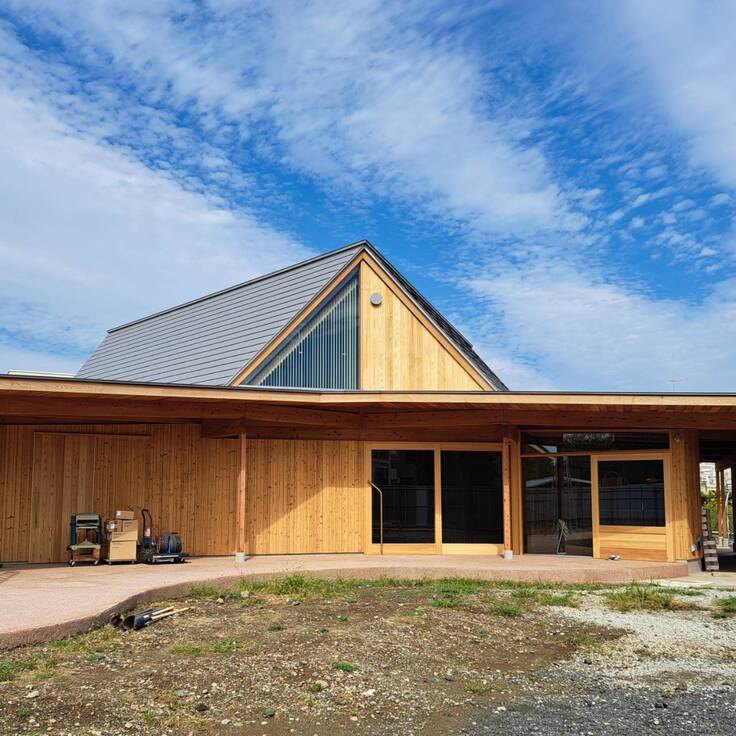 とんがり屋根の外観と、光が差し込み、木のぬくもりが感じられる室内で、子ども達は心地よい時間を過ごしています。