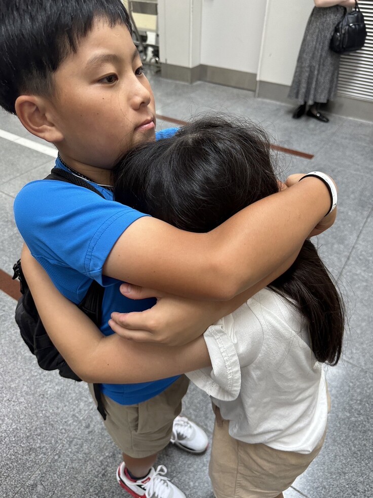 何度も抱っこして抱きしめていってらっしゃいをしました。