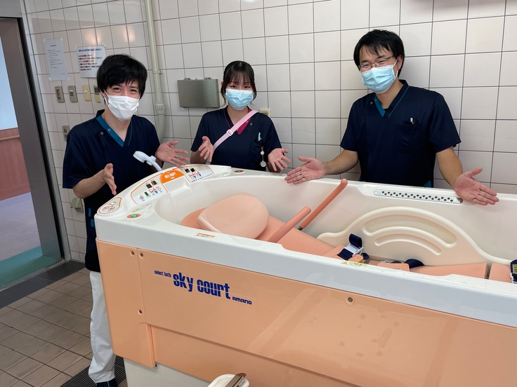 この介助浴槽を使い、いままでご不便をおかけしていた患者様に、安心して、そして快適に入院生活を送っていただけるよう努めてまいります。引き続き当院の活動を見守りいただきますと幸いです。これからもよろしくお願いいたします。