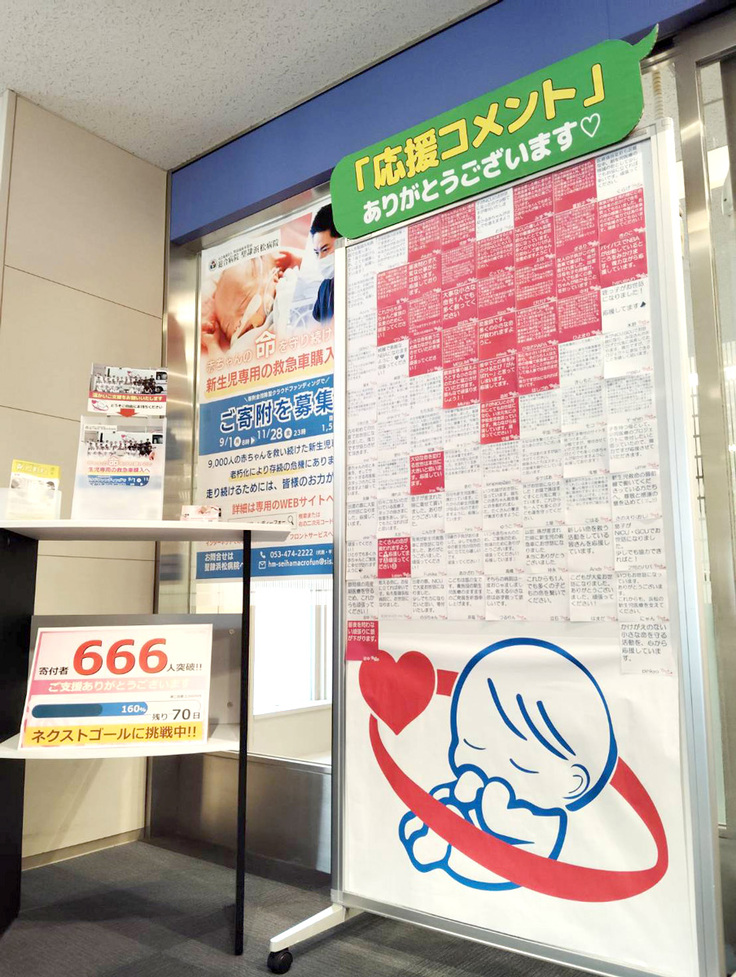 過去に新生児専用救急車をご利用になった方、NICUに入院なさっていたご家族、地域の皆さま、遠く海外から応援してくださる方など、本当にたくさんのコメントをいただいておりますので、定期的に貼り替えてご紹介させていただこうと思っています。