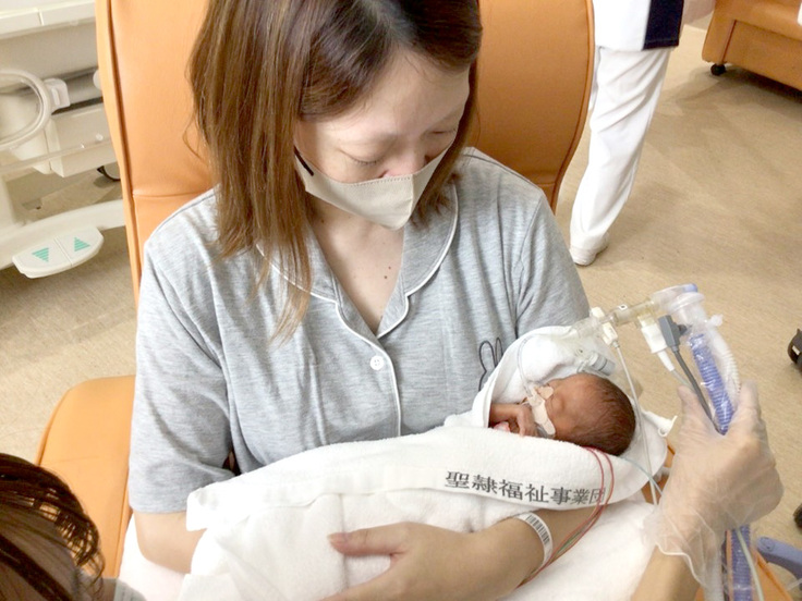 お母さんの腕の中で、小さな体がすっと落ち着いたように眠りにつくその姿は、まるで「ここがわたしの居場所だよ」と伝えているようでした。お母さんも、少し震える手でそっと赤ちゃんを抱きしめながら、「小さい、かわいい」と静かに話してくれました。NICUでは、こうした“はじめて”がどれも尊くて特別です。小さな体の中にある、大きな力と家族の愛に、心を打たれた一日でした。