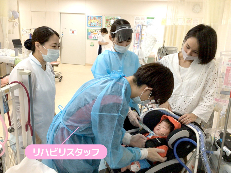 NICUは赤ちゃんにとって、集中治療を受けるだけではなく、成長の場でもあります。私たちリハビリスタッフは、病気を持った赤ちゃんが早く元気になるように、呼吸のサポートや過ごしやすい姿勢の獲得などさまざまな支援を医師や看護師と相談をしながら、日々赤ちゃんのリハビリに取り組んでいます。また、「ここまで良くなりましたよ」「最近はこんな動きが見られるようになりましたよ」など、リハビリの視点からご家族へお話することもあり、病気を持ちながらも、日々たくましく成長する赤ちゃんの様子を共有できることに、やりがいや喜びを感じています。