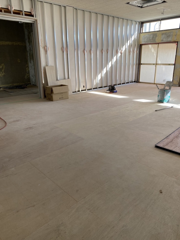 各部屋とも、床下の消毒・乾燥が済み、床板が貼られてきました。仕上げ段階まで後少しのようです。