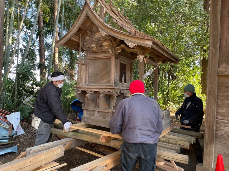そんな中、自分の身体に不安を感じ始めたことがきっかけか、それまで資金的な理由でなかなか取り組めていなかった御末社の改修工事に自費で取り組み始めました。5社の修繕という大きな取り組みに乗り出した先代ですが、そのうち2社の改修工事を終えた2022年に亡くなってしまい、それから私がその想いを継いで御末社改修を行なってきました。