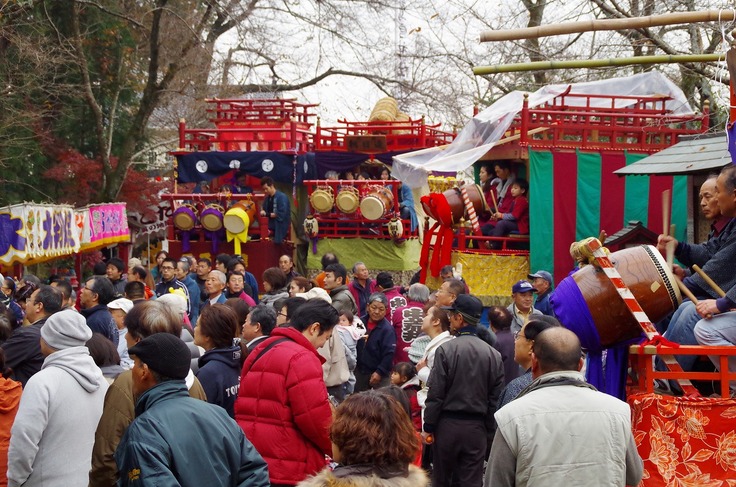 毎年、11月23日に行われるこの例大祭は、昔から「酉の市(とりのいち)」と呼ばれ、参拝者は多くの福を掻き込めるようにと熊手を受けたり、風邪で寝込むことのないようにと「たまご」と呼ばれる米粉の団子を受けます。常に閑静な境内ですが、例大祭の日はおもちゃ箱をひっくり返したような賑やかさがあり、昔ながらの村祭りの楽しさを味わうことができます。