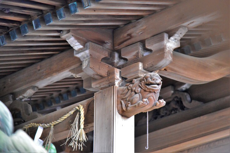 本殿は屋根の正面部分を長く伸ばした流造(ながれづくり)で、「柱に施された獅子の彫刻などは17世紀の様式を思わせます。各所に補修のあとが見受けられ、先人が大切に守り続けてきた歴史的遺産と言えます」と続けます。