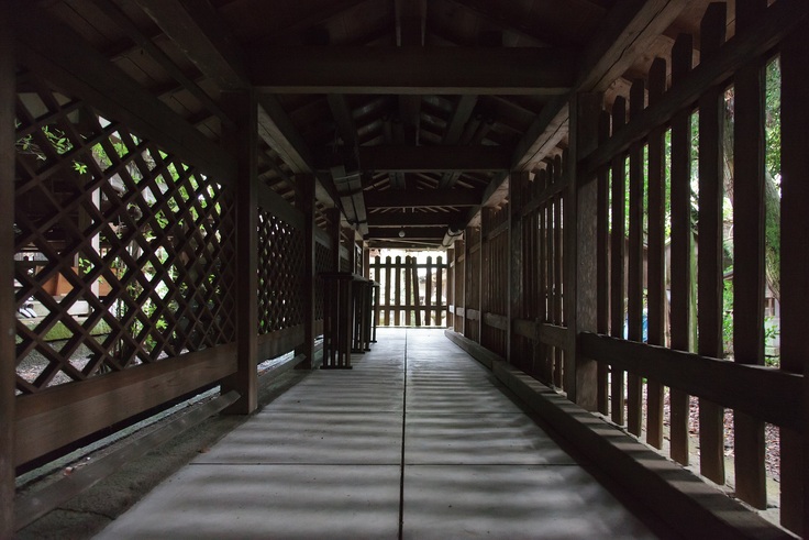 また、これらの社殿群の構成が独特で、正面の唐門の両側からのびる廻廊が本殿と内幣殿をぐるりと囲んでいます。廻廊伝いに本殿を一周できるこのようなスタイルは、全国的にも極めて珍しいものだそう。菱格子から木漏れ日が差す廻廊は趣があります。