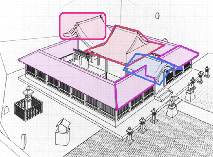 またこれらの社殿群の構成が独特で、正面の唐門の両側からのびる廻廊が、本殿と内幣殿をぐるりと囲んでいます。廻廊伝いに本殿を一周できるこのようなスタイルは、全国的に極めて珍しいものだそう。