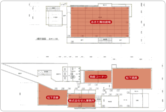 定期的開催する「あきた舞妓」のお披露目会を行う劇場として機能する他、稽古場としてそれらの見学も可能にします。その他お茶会などのイベントスペースとして、仕出しによる宴会場としても貸出を行います。