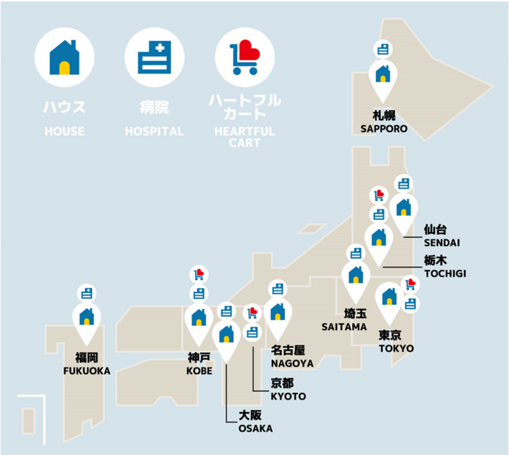 現在、国内では11箇所のハウスがあり、その運営はすべてボランティアによる活動と、寄付や募金によって成り立っています。