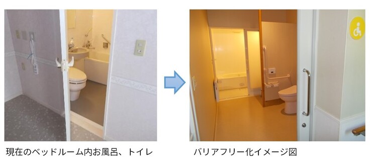 せんだいハウスのベッドルーム1部屋の浴室(お風呂、トイレ)を改修し、バリアフリー化する。