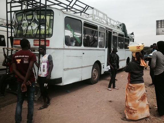 さて、そんな中ですが30日の朝から早速地方取材に出発しました。というのも1日、年に一度の大きな宗教行事があるからです。毎年百万人ものセネガル人が一つの地方都市に集まるこの行事。尋常じゃない渋滞が発生する事でも有名なため心して出発しましたが、渋滞の前に早速アクシデントが。写真のように足止めをくらいました。