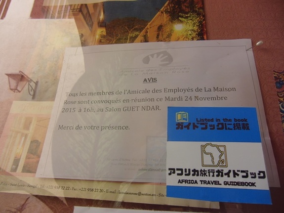 取材した施設の中で、ここは掲載しようと思った宿やレストランにのみ配布しています。これが日本人旅行者の目印となり、安心してセネガルをご旅行いただけるようにできたらと思っています。