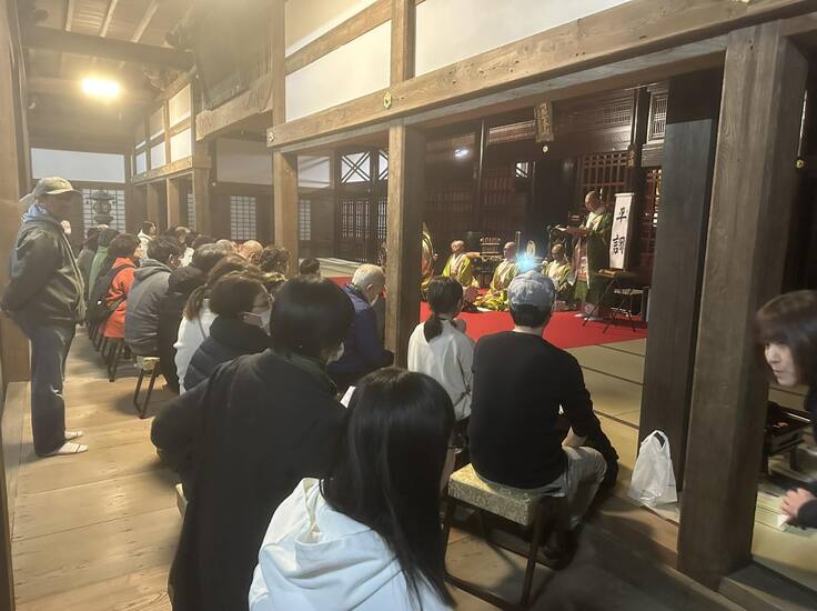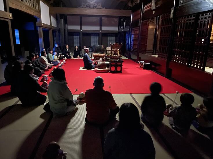 専称寺は元々「檀林」(僧侶の養成所・修行寺)であった由来から、住職といっしょにお念仏を称える「トワイライト念仏」も実施しました。老若男女、国籍も豊かな皆さまで、木魚をたたきながら「南無阿弥陀仏」とお念仏をお唱えしました。