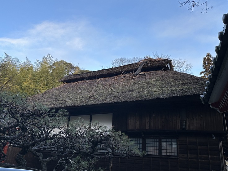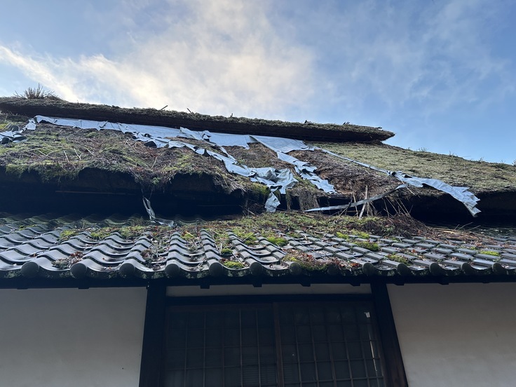 しかしながら、長年の無住状態等の影響もあり、茅葺屋根はボロボロで雨漏りもしている状況です。せめて屋根にカバーだけでもせねばならぬ状況ですが、それにも数千万のコストがかかり、手の施しようがないのが現状です。